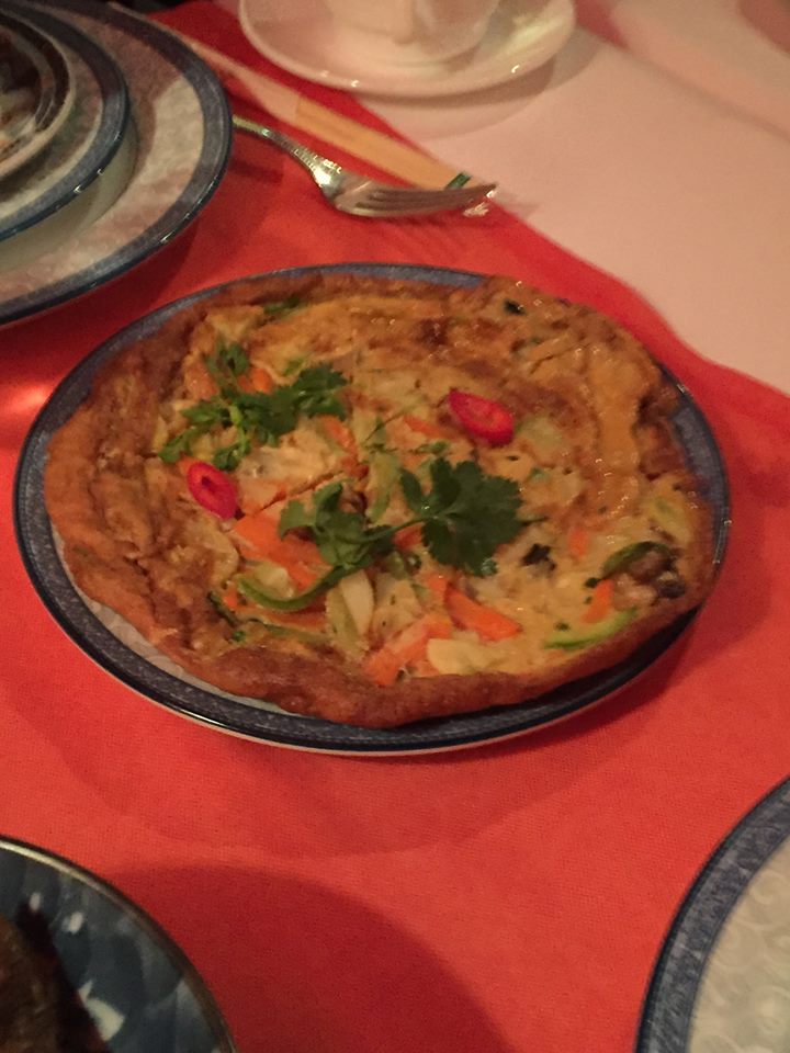 ไข่เจียวผัก ออกเปรี้ยว เผ็ดนิดๆ ฟูพอสมควร