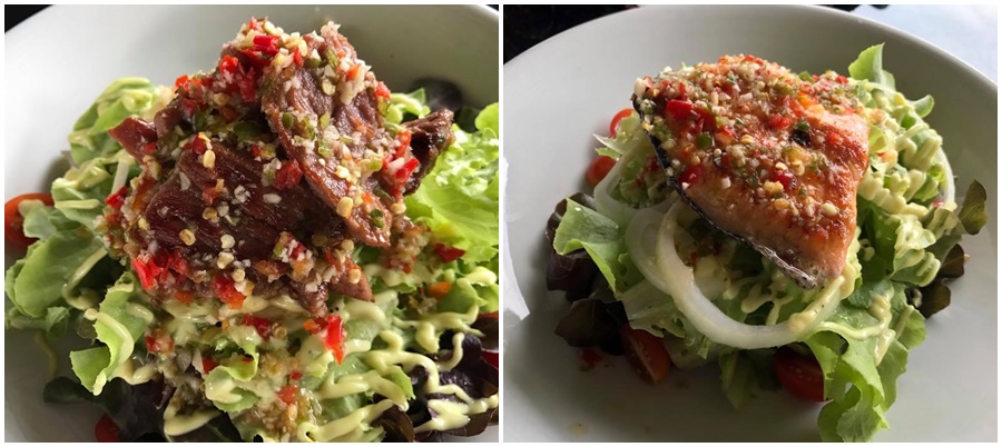 จัดสลัดเนื้อย่างและสลัดปลาแซลม่อนเบาๆ มีความนุ่มอยู่