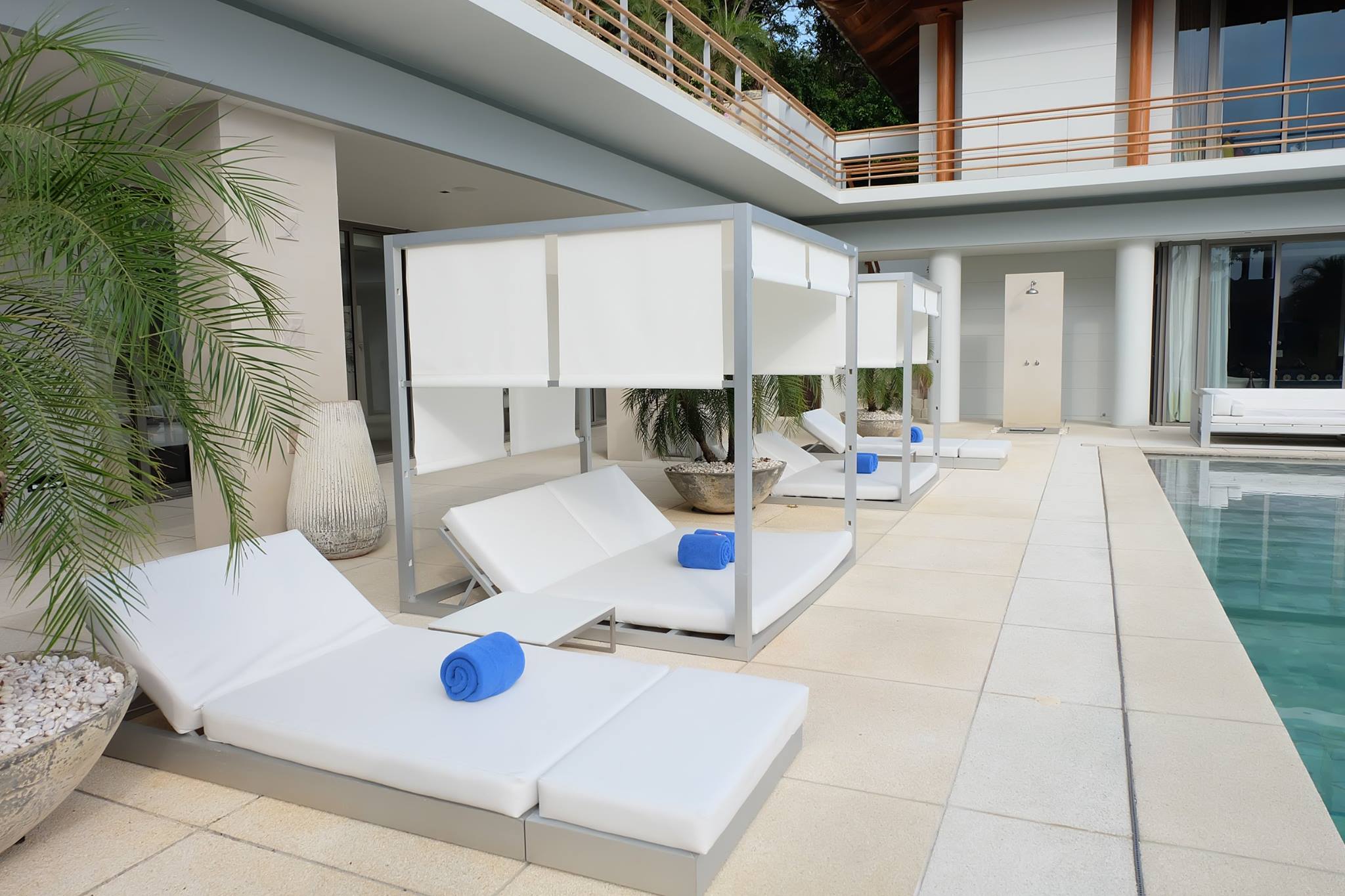 แต่ละหลังมีลานระเบียงและมีห้องนั่งเล่นแยกเป็นสัดส่วน รวมทั้งมีโทรทัศน์จอแบนระบบช่องสัญญาณเคเบิลและมีตู้นิรภัย