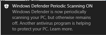 Windows defender แจ้งเตือนว่ามี Anti-virus ตัวอื่นทำงาน