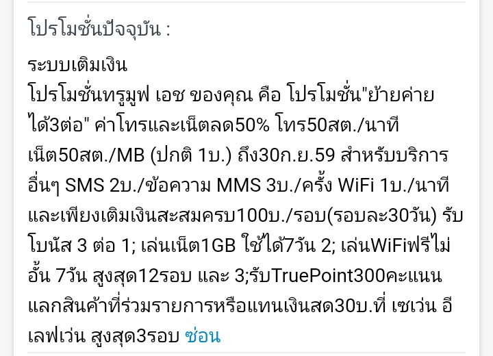 เมื่อเข้าไปเช็คข้อมูลในเว็บก็เป็นแบบเดียวกัน โปรเดียวกันเลยกับข้อความที่ทรูส่งมาให้ข้างบน