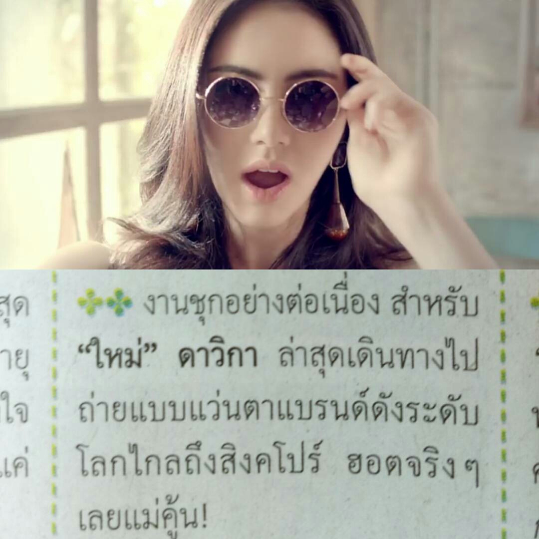 ใหม่ ดาวิกา...งานชุกอย่างต่อเนื่อง ...ล่าสุดเดินทางไปถ่ายแบบแว่นตาแบรนด์ดังระดับโลกไกลถึงสิงคโปร์