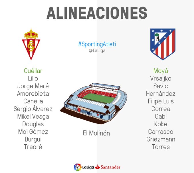 รายชื่อผู้เล่นทั้ง 2 ทีม ในส่วนของแอตมาดริดนั้นใช้ผู้เล่นชุดเดิมทุกคนเหมือนตอนต้นฤดูกาลที่แพ้มา 3-0 เลย ก็หวังว่าจะไม่ยับเยินแบบนัดนั้นอีกนะ