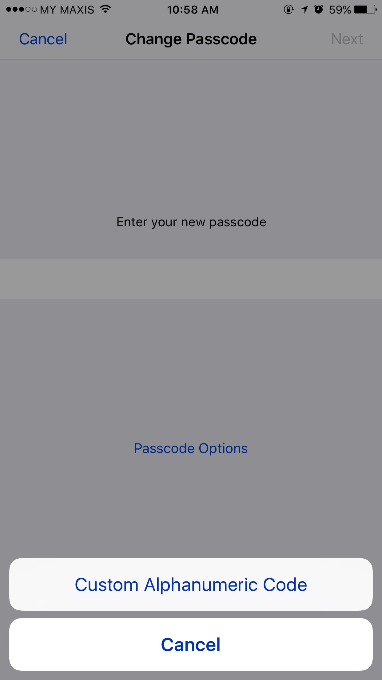 - พอกด Passcode ก็ขึ้นมาเฉพาะ Custom Alphanumeric Code แบบนี้