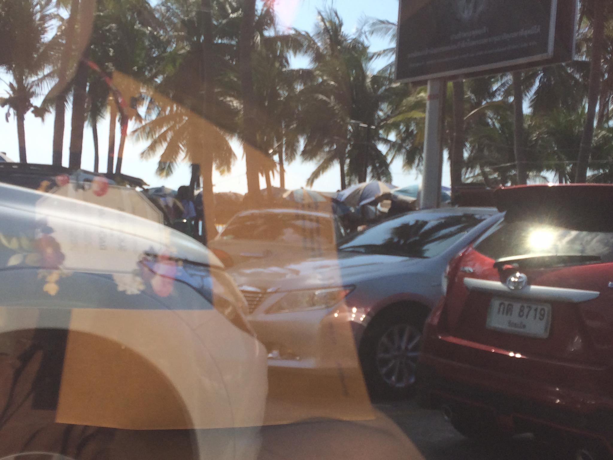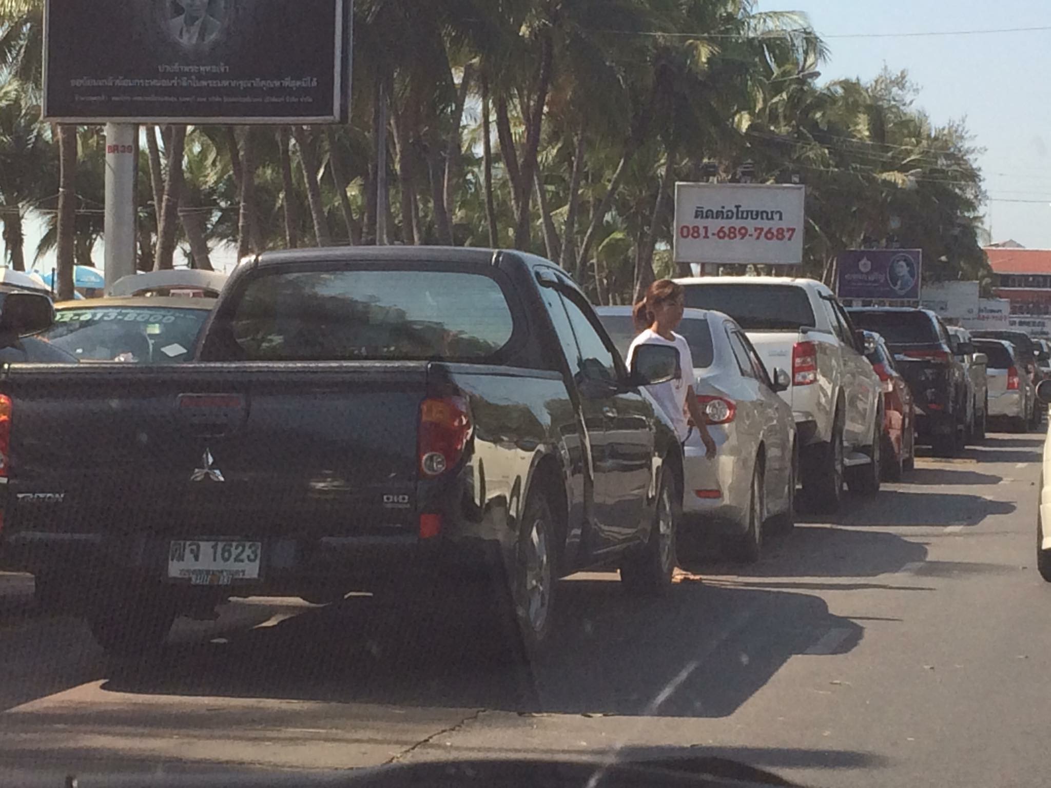 ที่บางแสนจอดรถกันซ้อนสามแถว แต่ละแถวก็ชิดกันมากๆ