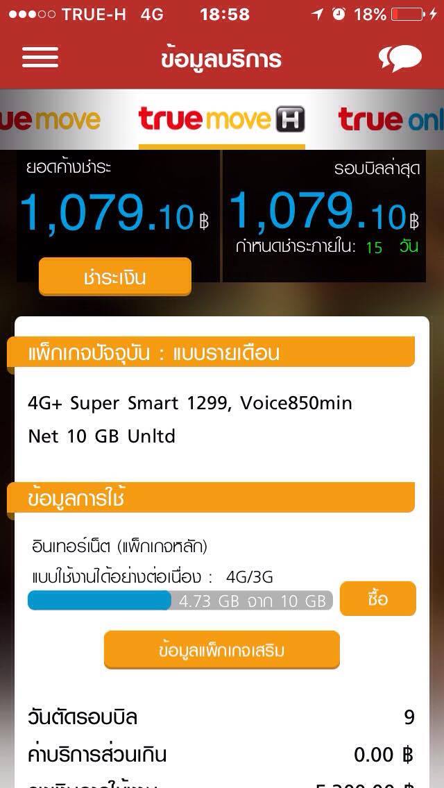 2.ผมผิดสังเกตยอดบริการส่วนเกิน ซึ้งช่วงแรกๆเกินมา 9 บาท ผมยังไม่สนใจอะไรคิดว่าอาจจะโทรเกินรึป่าว(มีอยู่ช่วงหนึ่ง แอพ True Service ไม่ขึ้นสถานะคงเหลือการโทร จึงคิดว่าผมอาจโทรเกิน)