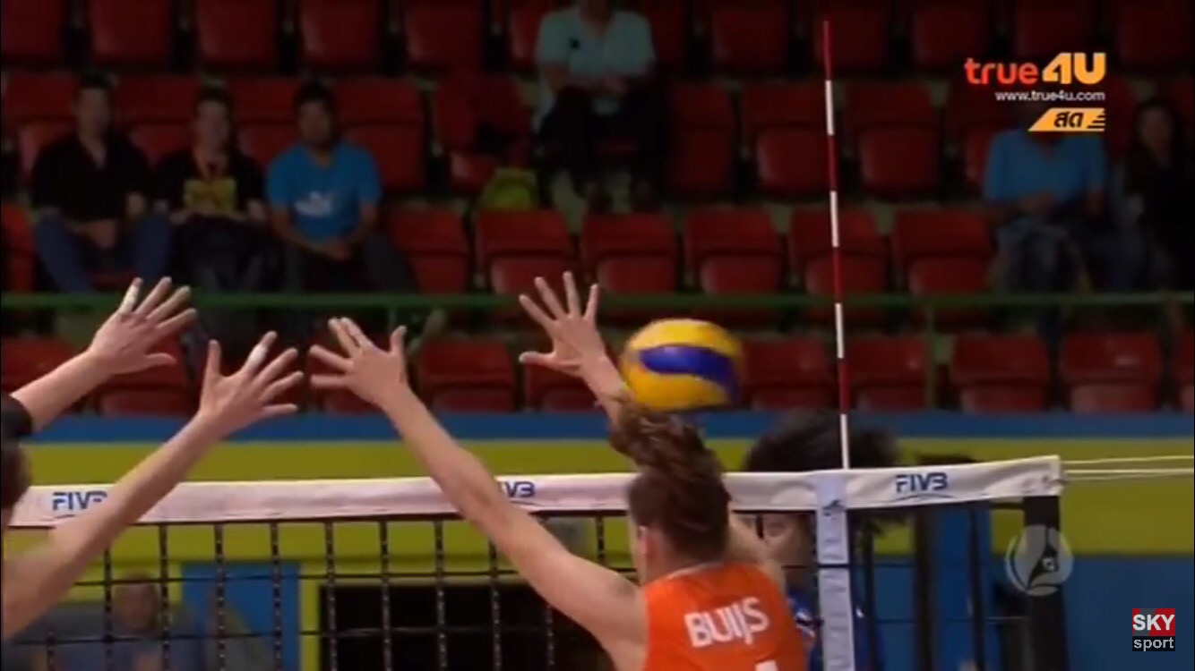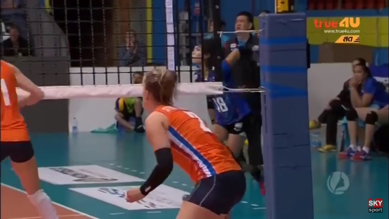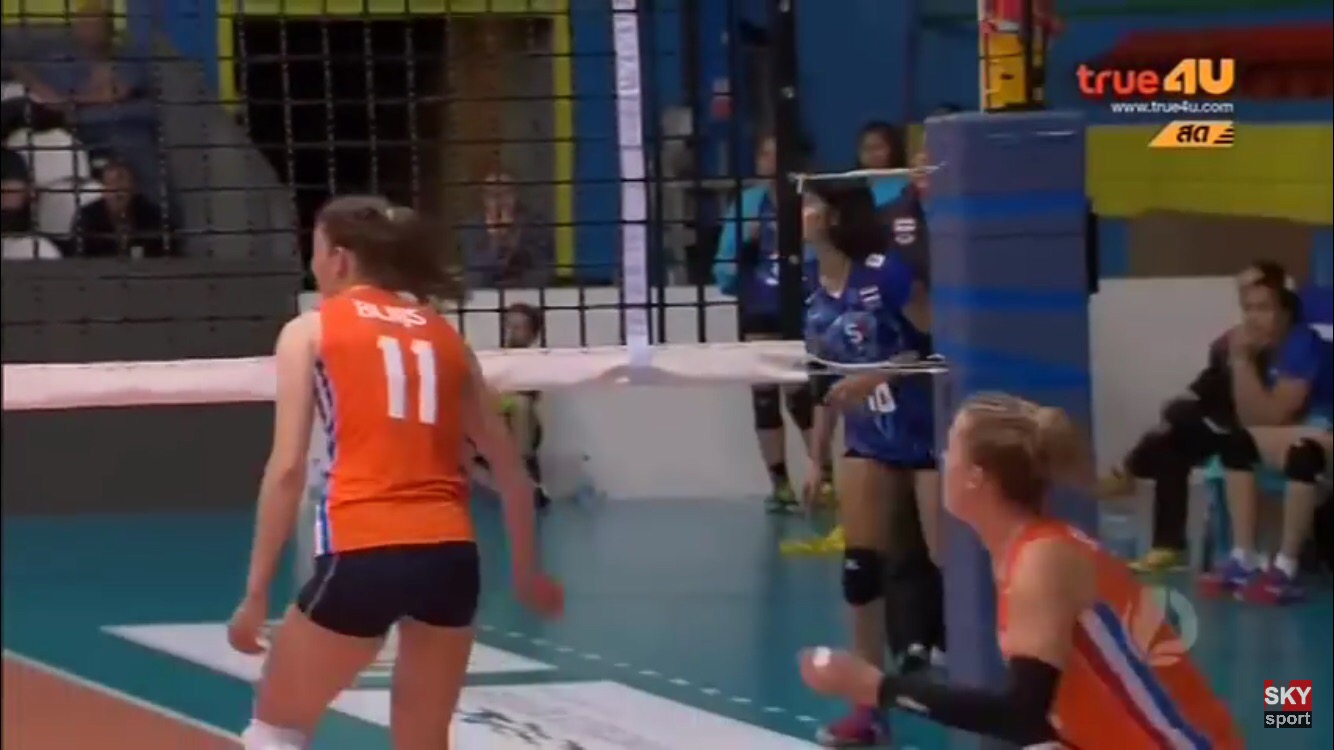 ฮาชอตนี้มาก ที่บิ๋มเสิร์ฟพลิกเนต เนเทอร์แลนเคาะข้ามมา แล้วเพียวcounter attackกลับ ตีทัชลอดแขนออกไป