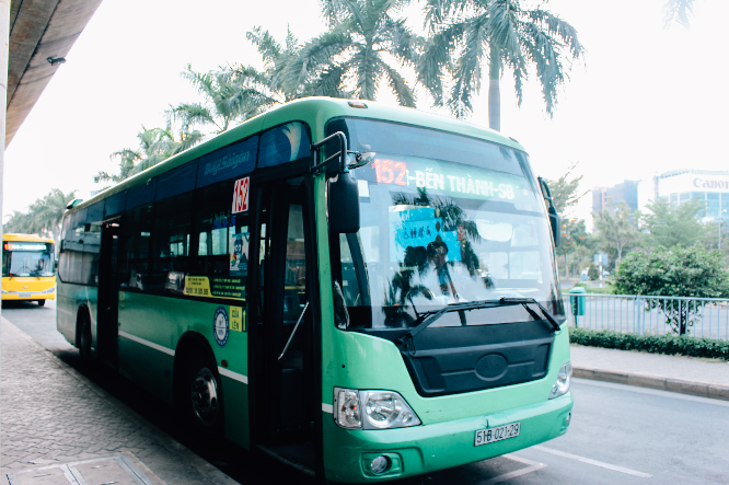 สำหรับคนที่ไม่ได้จองรถเข้าเมือง ให้ใช้บริการรถเมล์ เบอร์ 152 ไปลงตลาดเบนถัน คนละ 5,000 ดอง ถ้ามีกระเป๋าด้วยเก็บเพิ่ม 5,000 ดอง