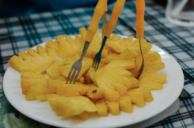 มาดูหน้าตาอาหารกัน ราคาก็สมราคาไม่แพงมาก เริ่มจาก ข้าวผัด ปอเปี๊ยะสด เฝอ และสัปปะรดเย็นชื่นใจ