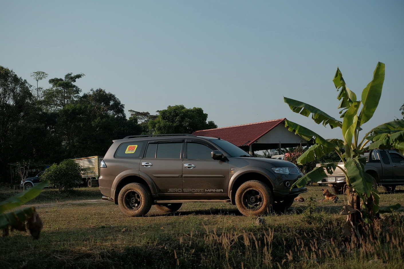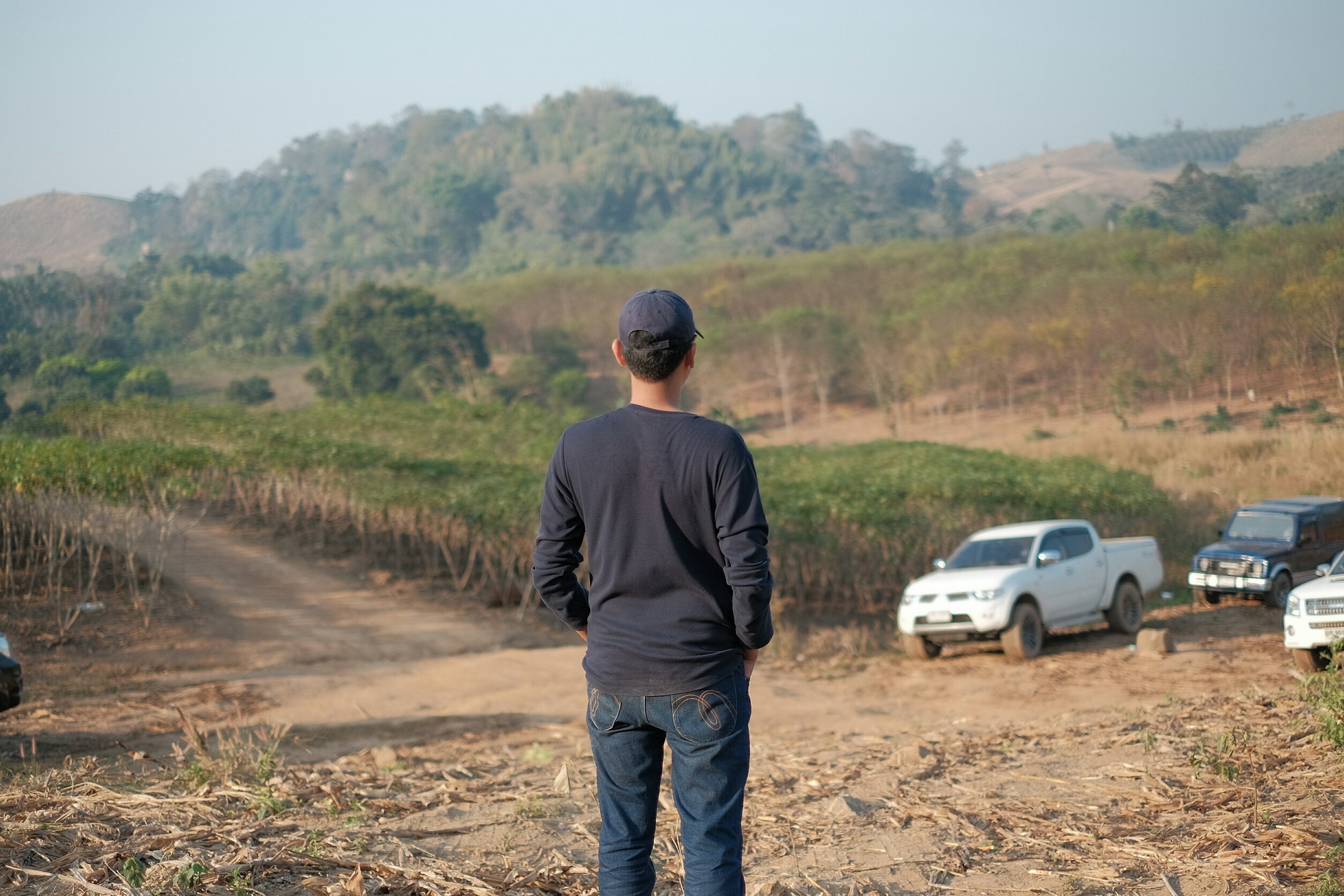 จากลานกางเต้น จากที่สอบถามเราต้องขับรถไป 1 กม. ไปที่ตรีนเขา และเดินขึ้นอีก 1 กมไปยอดเขา