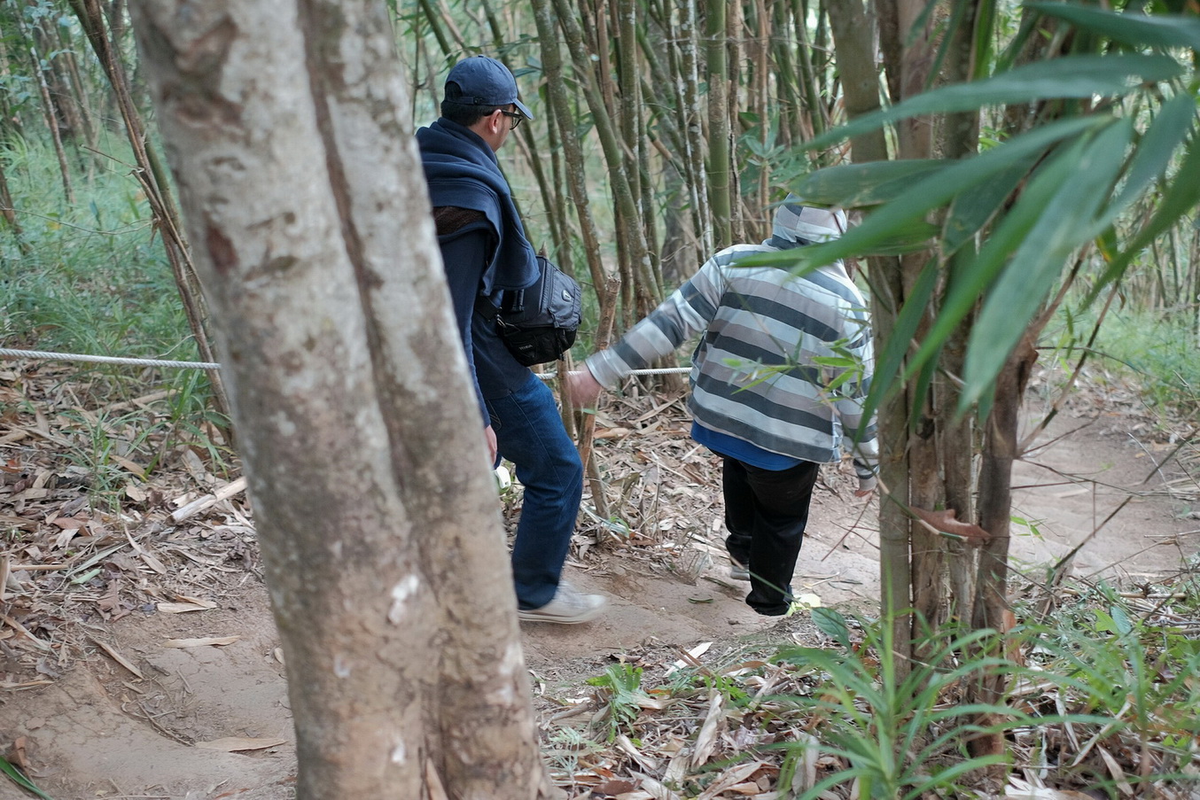 ทางค่อนข้างชันครับ ความชั้นนี่ระดับ น้องๆ ภูกระดึงเลย และมืดมาก ต้องอาศัยไฟจากมือถือ เพราะไอ้ตัวก่อเรื่องมั่นใจว่ามีไฟฉาย พอซื้อถ่านไฟฉาย แต่ดันไม่มีไฟฉาย