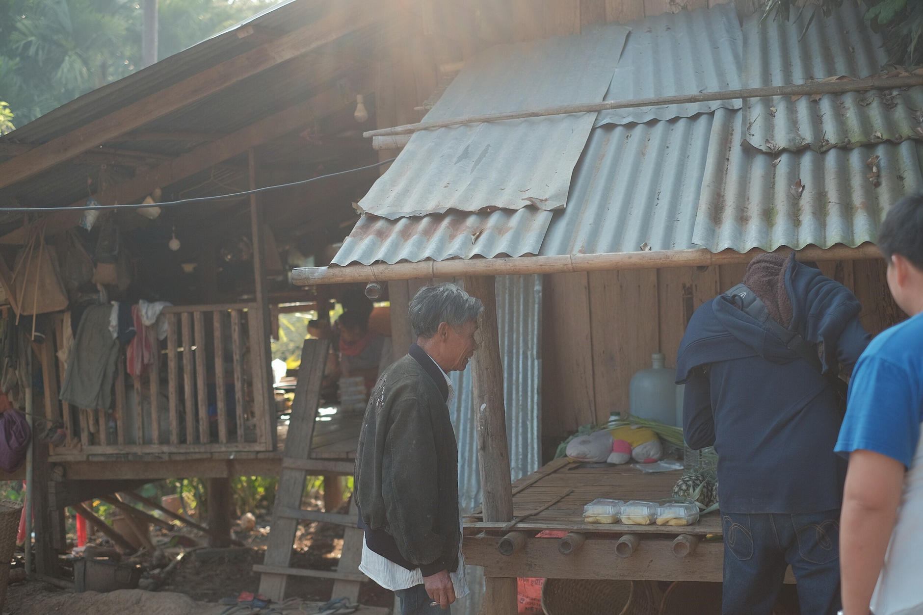 บ้านของชาวบ้านนำผลผลิตมาขายระหว่างทางเดินกลับ