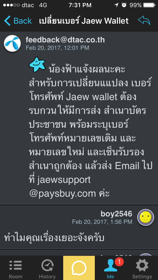 แค่บ่น เพราะผมก็ส่งเมลไปตามที่ cc dtac แจ้งไว้ แต่ที่ต่างตรงที่ ยกเลิกเลยไม่ใช้ ทั้งๆ ที่แรกจะใช้ต่อ เพราะต้องการเปลี่ยนเบอร์มือถือ แทนเบอร์เดิมปิดไปแล้ว