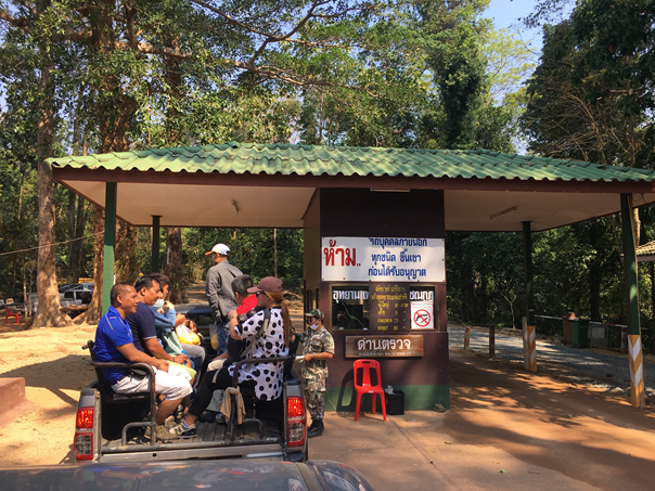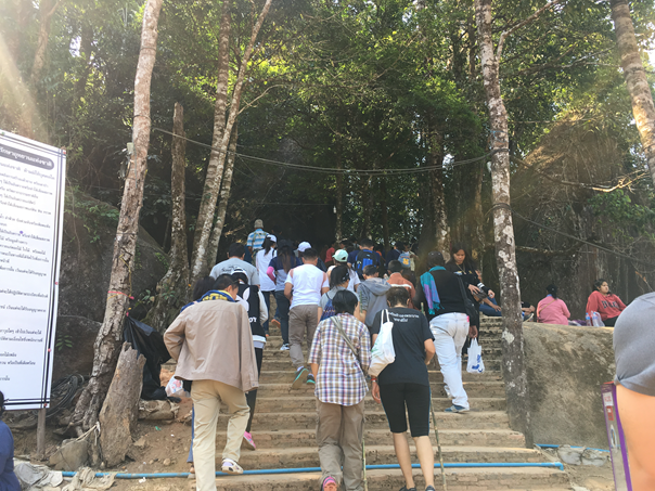 ขอตัดภาพมาที่เตรียมขึ้นเขาเลยละกันนะ…ถึงประมาณ 9.30 น. พี่สาวที่มาทุกปีบอกว่า เมื่อเทียบกับปีก่อนๆ และวันหยุดด้วยแบบนี้ ถือว่าคนน้อยมากกก บางตากว่าที่คิดไว้มาก จากที่เคยรอรถขึ้นสองชั่วโมง คราวนี้ก็ได้ขึ้นเลย เจ๊บอกว่าไม่รู้เพราะคนไปขึ้นกลางคืนหมดแล้วหรือเปล่า แต่การจัดการดีมากขึ้นเช่น