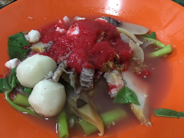 ทีนี้เหลือเวลา เลยขับเข้าตัวเมืองไปกินข้าวกัน โดยอาหารมื้อแรกของเมืองจันท์เป็นเย็นตาโฟเจ๊เพ็ญ ซึ่งโดยรวมถือว่าอร่อยดีนะ กั้งตัวเล็กไปหน่อย ชอบหมูชะมวงหมั่นโถวมากกว่าอีก