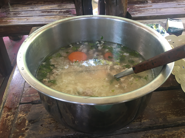 ตัดภาพมาที่ตอนเช้า เก็บของเตรียมของเสร็จลงไปกินข้าว เช้าวันนี้เป็นข้าวต้มหมูกุ้งหม้อใหญ่ ไม่หวงกับเลย กินกันไม่หมด มีไมโล กาแฟ ขนมปัง นมข้น ขนมปัง แยม พร้อมเครื่องปิ้ง อยู่ดีอิ่มสบาย บรรยากาศ ตกคนละ 800 บาท คุ้มมาก