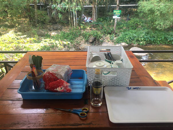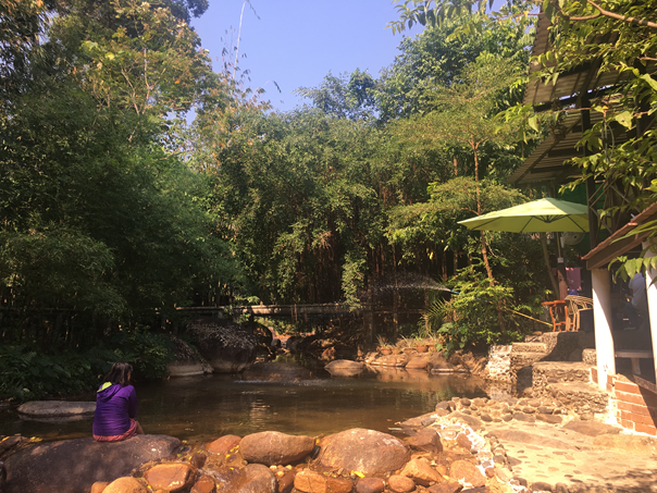 ถึงจะพักด้านใน แต่ทางที่พักเองก็จัดส่วนที่เป็นศาลาริมน้ำไว้ที่ห้องเราสำหรับไว้กินข้าว พูดคุยในช่วงเย็นด้วย บรรยากาศดีมากๆ บริเวณน้ำเป็นต้นน้ำธรรมชาติเลย มีน้ำเอะ แต่ไหลไม่แรง เสียดายที่ตอนนั้นไปถึงก็เย็นแล้ว ลงเล่นกลัวเป็นหวัด 555 เลยเอาขาไปแหย่ๆพอ มีน้องปลามาทักทายด้วย