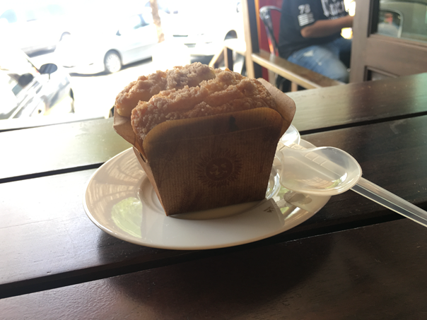 สุดท้ายแวะกินกาแฟที่ร้าน “บ้านตากาแฟ” ร้านนี้สูตรของทางร้านจะหวานมากนะ ขนาดเราสั่งหวานน้อยยังหวานมากสำหรับเราเลย ส่วนเค้กและมัฟฟินอร่อยดีเลยละคะ แต่ราคาก็ใช้ได้เลย (ชิ้นละ 85 บาท)