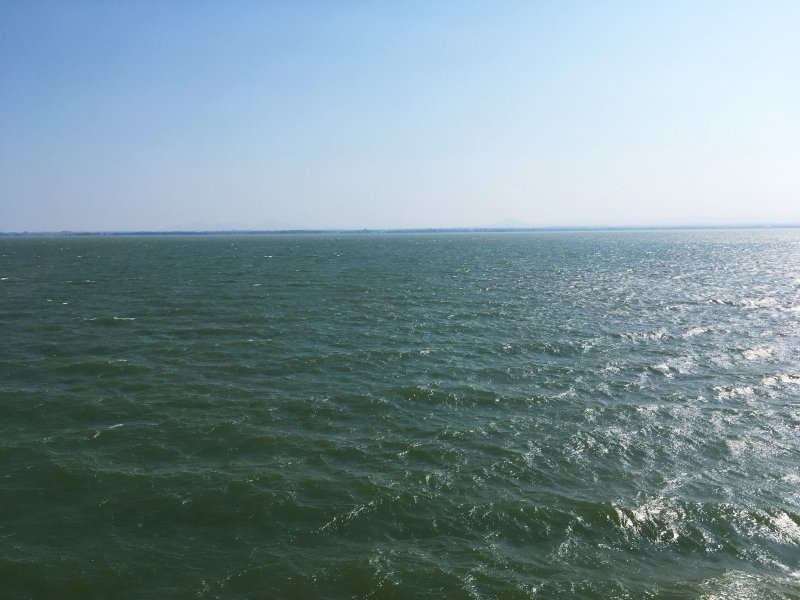 รถไฟแล่นผ่านทางรถไฟลอยน้ำ แวบแรกที่เห็นด้วยตาคือสวยมาก แสงพระอาทิตย์กระทบกับน้ำ