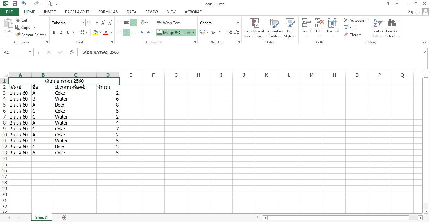 จากตารางดังกล่าว อยากทราบว่า ต้องใส่สูตรอย่างไร เมื่อ ต้องการ ให้ สรุป แยก ตามเป็น บุคคล เช่น ทั้งเดือน A Coke 9 Beer 8 Water 4 , B Water 11 ประมาณนี้ครับ