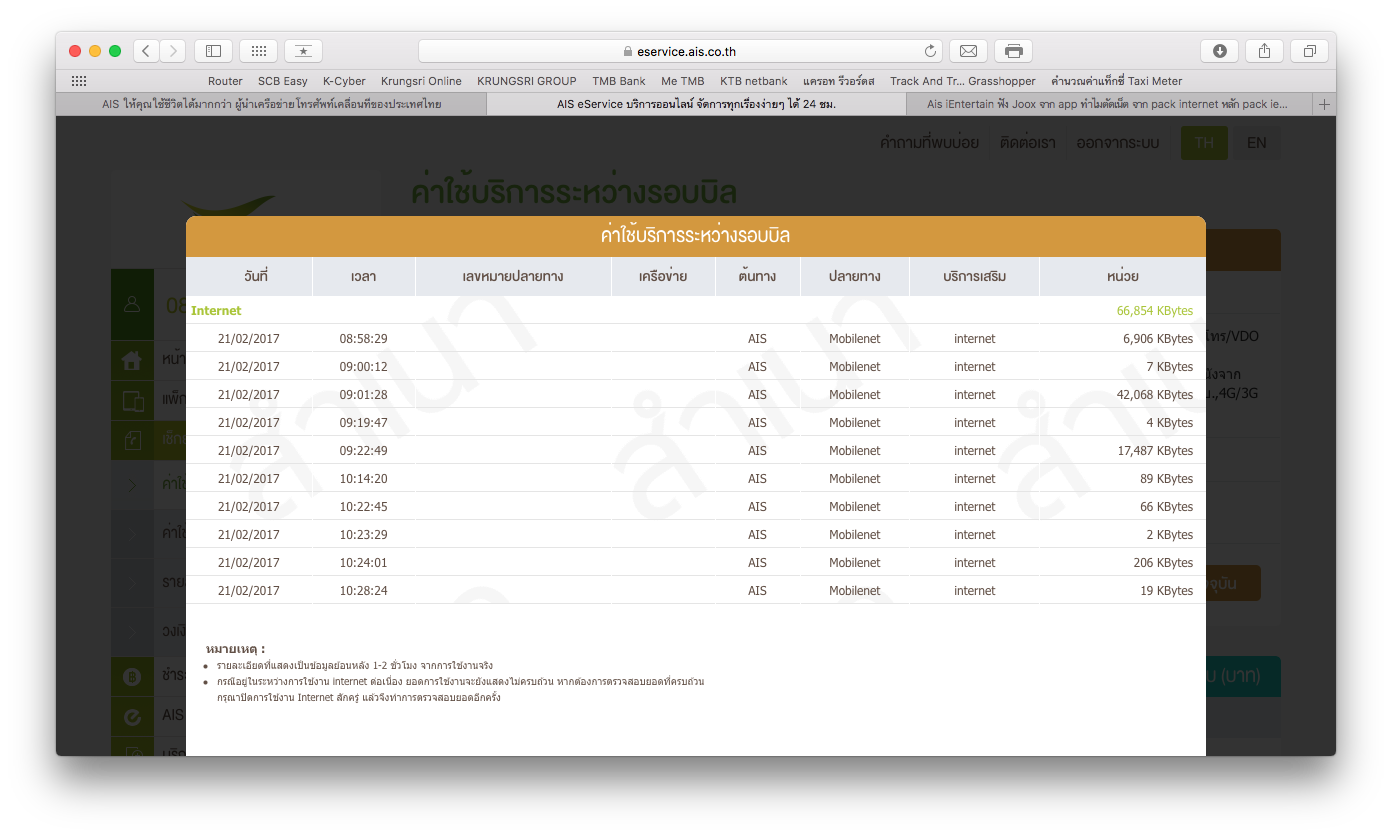 รบกวน AIS ตรวจสอบการใช้งาน internet ให้หน่อยครับ