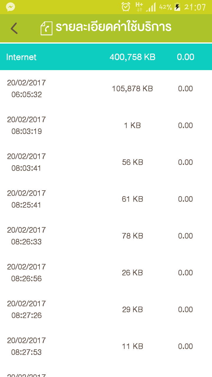 ลองเช็คในรายละเอียดค่าใช้บริการยอดการใช้งานอินเตอร์เน็ตแค่ 400,758 KB หรือเท่ากับ 0.4 GB