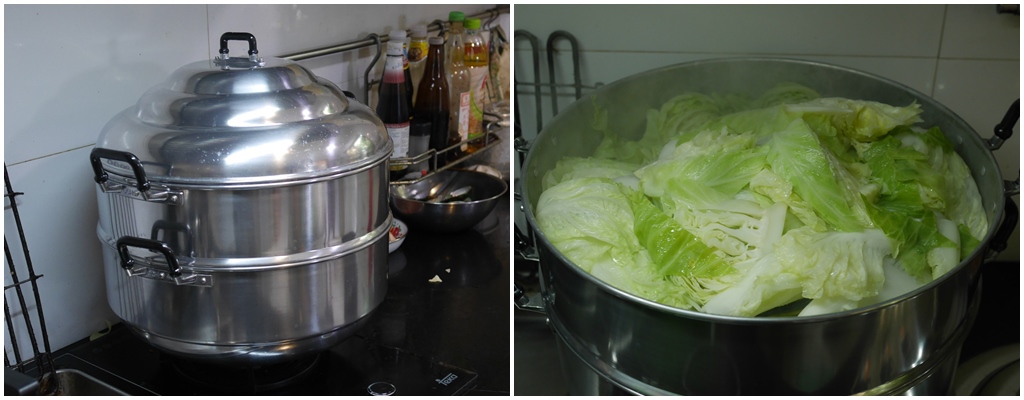 แป๊ะซะต้องใส่ผักนึ่งไปด้วย ใช้ กะหล่ำปลี และ ผักกาดขาว