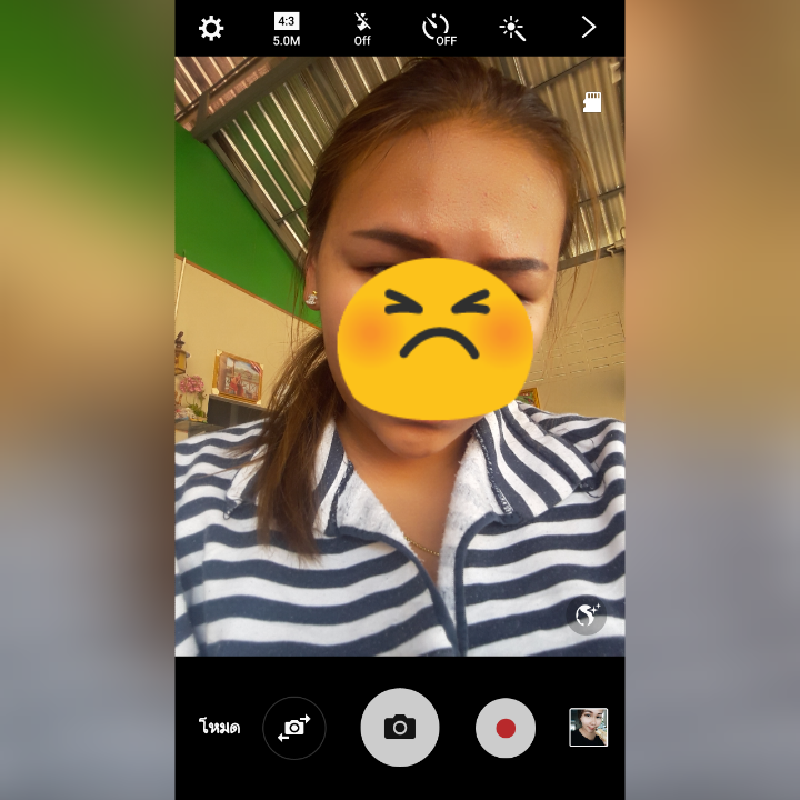 เพิ่งซื้อมาเมื่อวานสดๆร้อนๆ (ตอนซื้อเราไม่ได้ลองกล้อง เพราะน้องชายเพิ่งซื้อมาใช้แล้วถ่ายรูปสวย) กลับถึงบ้านชาร์ตทิ้งไว้จนเต็ม เราเลยมาลองเซลฟี่ซะหน่อย แต่เฮ้ย! กล้องไม่ชัดมากกกกกกก สีออกเหลือง เม็ดสีแ