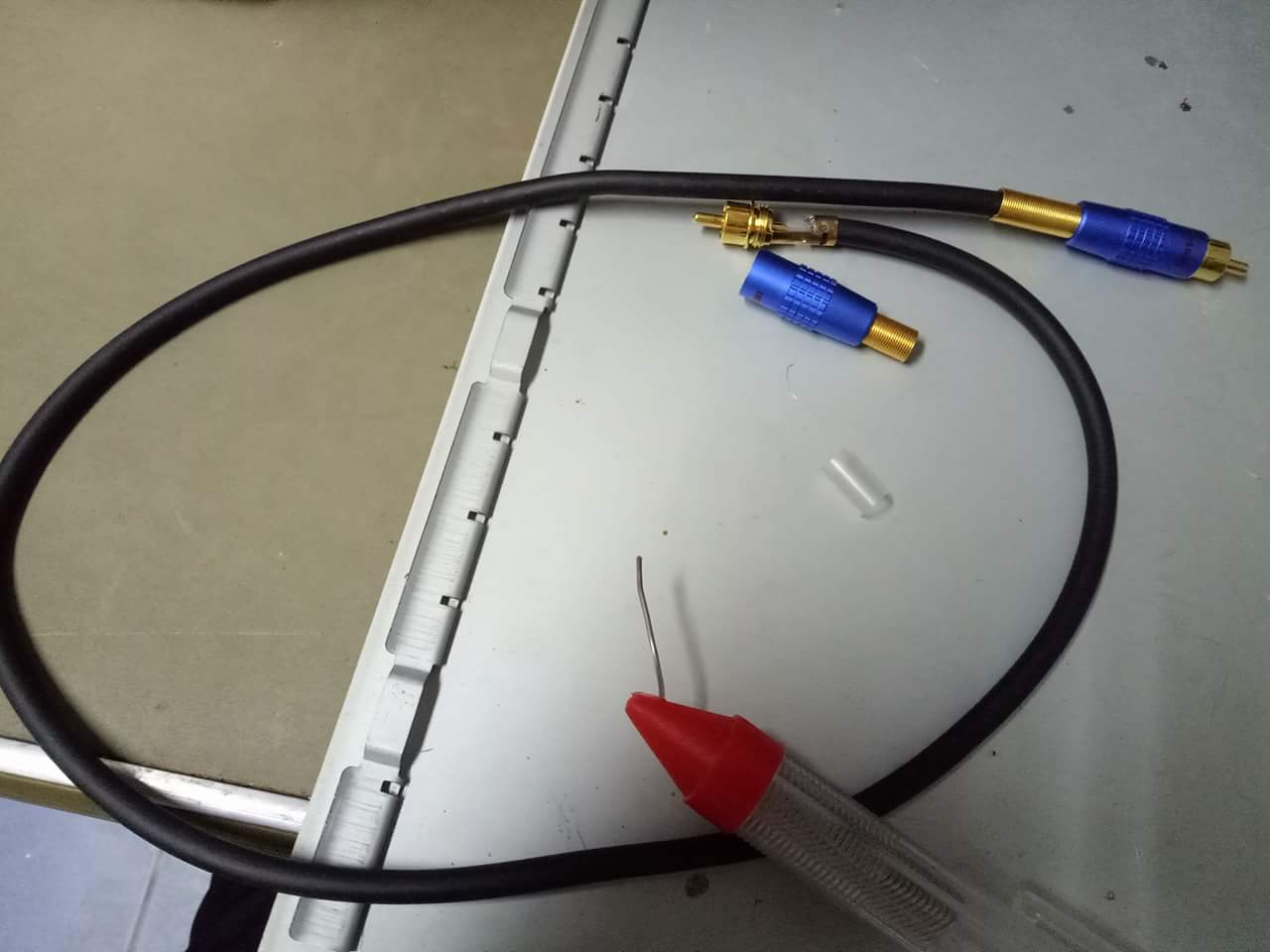 ไม่ขออธิบายมาก วันนี้ผมนั่งบัดกรีเกือบยี่สิบคู่ บอกเลยว่าเป็นแบบนี้เยอะมาก อธิบายด้วยภาพครับ