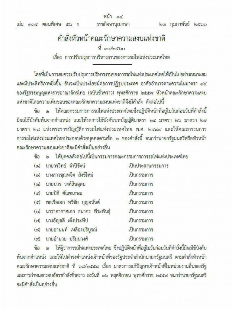 ผู้ว่า รฟท. ถูกย้าย(ปลด)ไปประจำสำนักนายก เพราะเหตุใด
