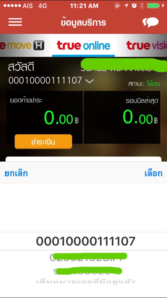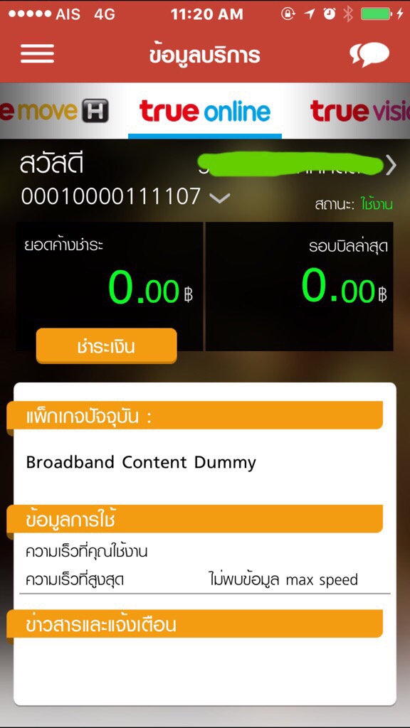 วันนี้เข้าแอพ True iService แล้วเจอข้อมูลในส่วนของ True online มีหมายเลขหนึ่ง