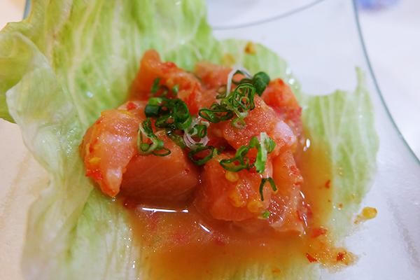 - Salmon Thai Spicy หรือยำไทยแซลมอน ราคา 135.-