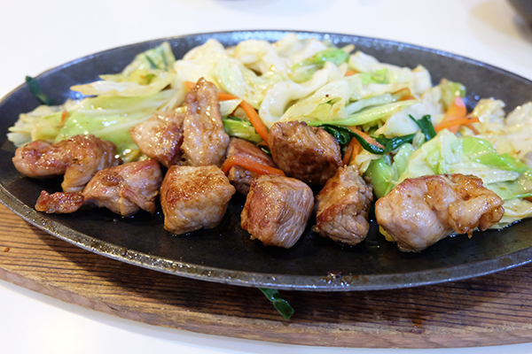 อันนี้อร่อยค่ะ เสิร์ฟมาในกระทะร้อน มีซอสมาให้สามหลุมแบบสเต๊กตามร้านญี่ปุ่นทั่วไป ชอบอันนี้มาก เนื้อนุ่ม ฉ่ำ อร่อยยยย อยากทานอีก ได้ราคาโปรยิ่งคุ้มค่ะ