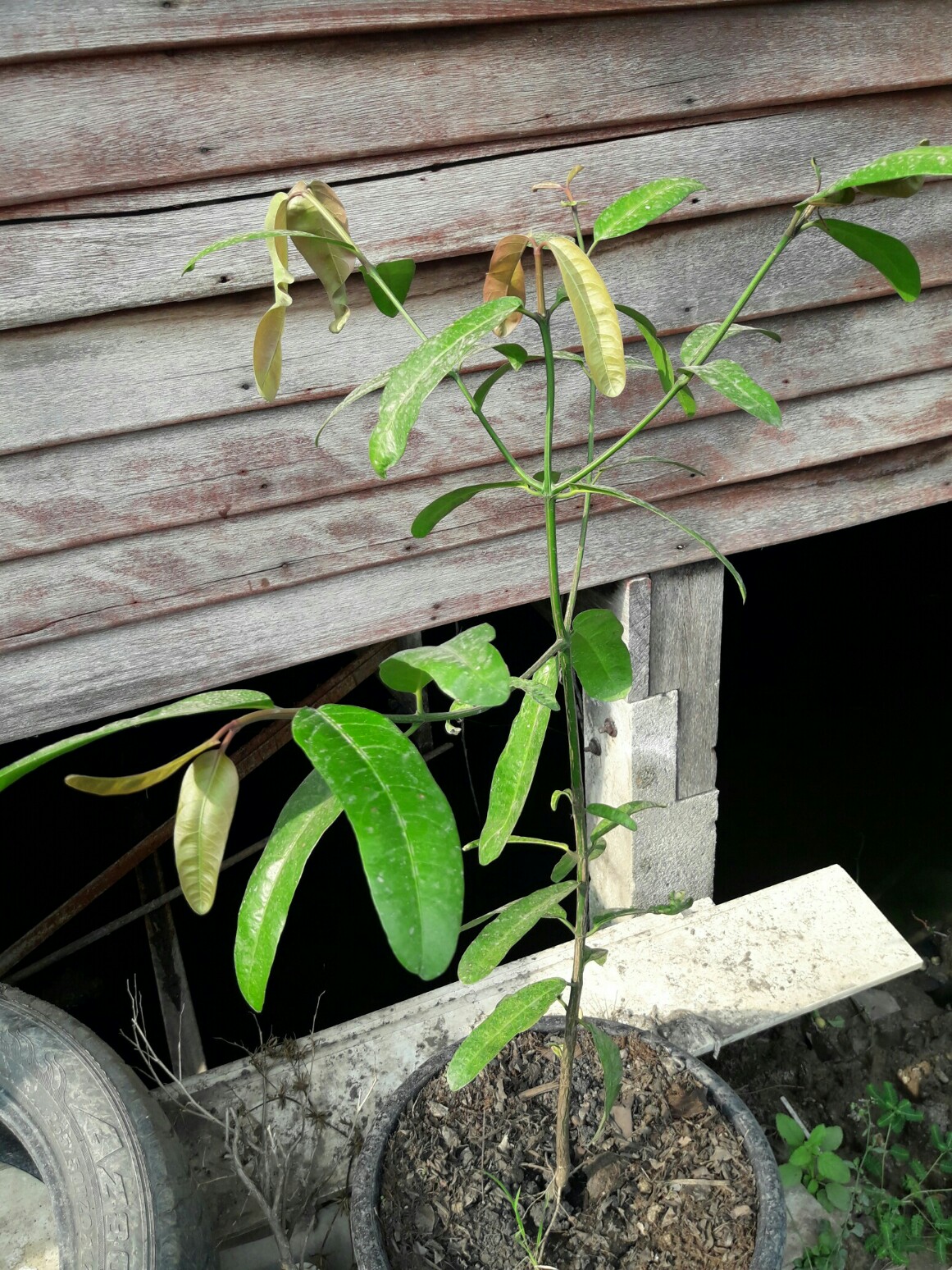 มีต้นไม้ขึ้นอยู่ริมชายคาบ้านค่ะ ใบมันวาวสวย ลำต้นสูงตรง แม่บอกว่าไม่รู้จักแต่ไม่ถอนเพราะมันสวยแปลกดี เอาไว้บังลม บังแดด แต่เรากังวลว่ามันจะเป็นต้นไม้อันตรายหรือเปล่า รบกวนช่วยดูให้หน่อยค่ะ