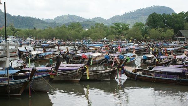 เรือเป็นพันลำวิ่งไปมา แถวหาดนพรัตน์เกาะพีพีที่