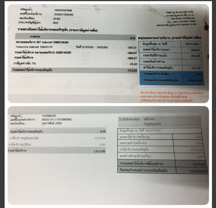 แต่หลังจากนั้นโทรศัพท์บ้านใช้ไม่ได้ ซึ่งโทรศัพท์บ้านเป็นของ tot และเน็ตหลุดทุกๆห้านาที จึงติดต่อพนักงานให้เข้ามาแก้ไขให้ รอบแรกติดต่อไปทางอินบ็อกแฟนเพจ อธิบายให้ลองแก้ไขเองด้วยภาษาเทคนิด โอ่ยยยคุณ ใครเค้าจะไปเข้าใจคะ จึงโทรติดต่อศูนย์ค่ะ พนักงานมาแก้ไขให้ คิดว่าจะหมดเรื่องแล้ว แต่วันนี้กลับได้รับบิลค่าอินเตอร์เน็ตสองบิลซ้อนกัน รบกวนตรวจสอบให้ทีนะคะ ขอติดต่อทางพันทิปนะคะเพราะอินบ็อกไม่ค่อยจะตอบค่ะ