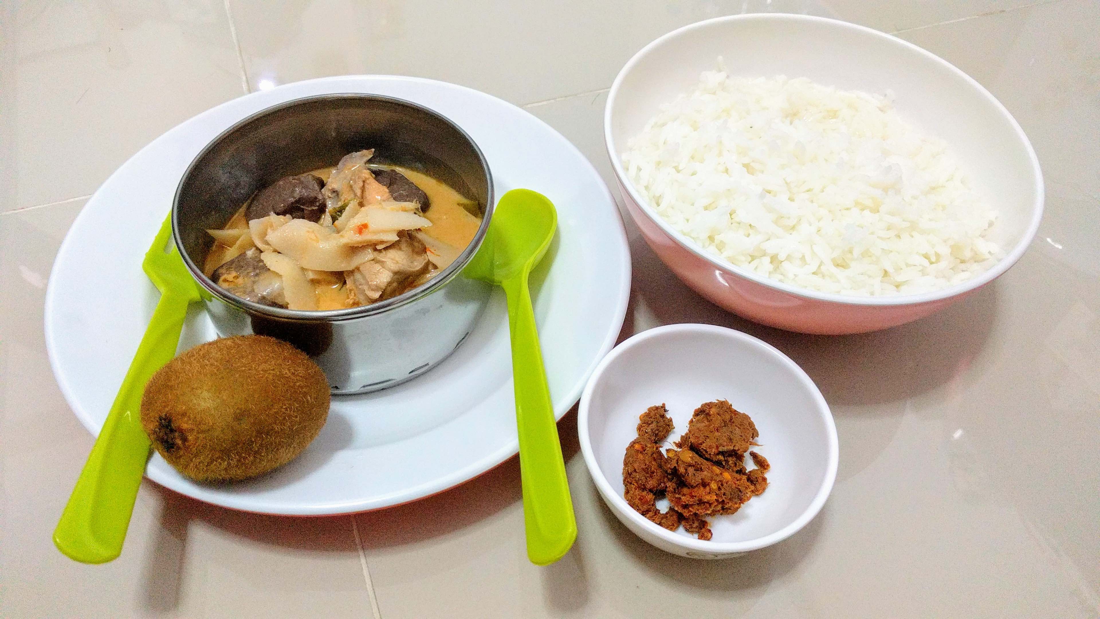 กาต้มน้ำ และเริ่มปฏิบัติการอุ่นอาหาร ซึ่งเป็นภารกิจหลักสำหรับเขาในตอนนี้ ชายหนุ่มเริ่มจากเทน้ำใส่กาต้มน้ำแล้วก็เสียบไฟทิ้งไว้ ระหว่างนั้นก็เดินไปหยิบกับข้าวและข้าวหอมมะลิพร้อมทานอีก 1 ถุงออกจากตู้เย็น ทันใดนั้นเขาได้เหลือบไปเห็นภาชนะสุดวิเศษอีกอย่าง ซึ่งปกติคนทั่วไปจะนำภาชนะนี้ใส่อาหารให้เด็กๆไปโรงเรียน หรือใส่อาหารไปถวายวัด