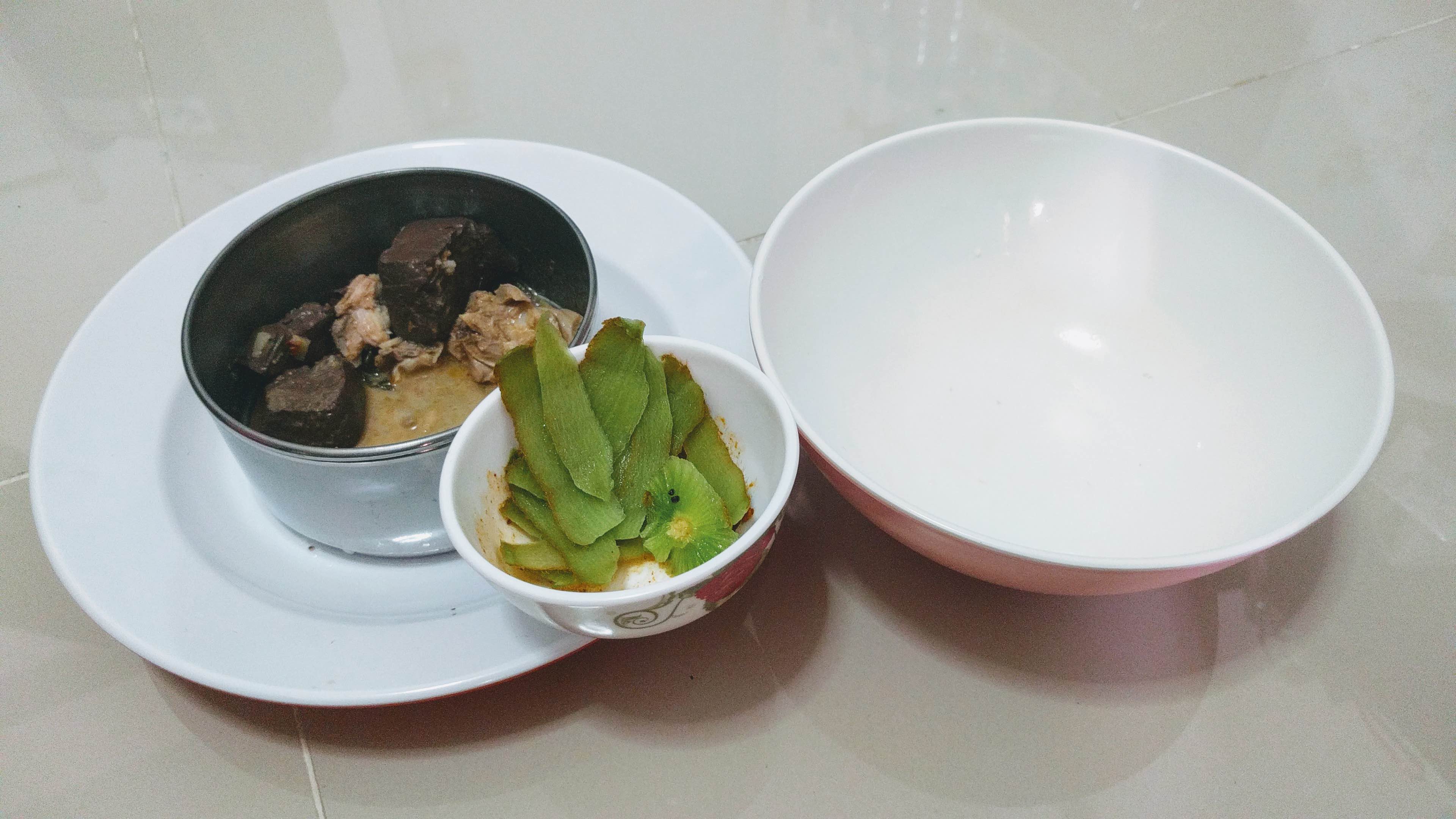ระหว่างรอชายหนุ่มเดินไปหยิบน้ำ เตรียมช้อน เตรียมน้ำพริก และผลไม้สุดประเสริฐ กีวี่ 1 ลูก อันที่จริงเขาอยากได้หลายลูกแต่มันติดปัญหาหลักคืองบหมด 5555 ซึ่งกีวีที่เค้ากินก็ได้มาจากสินค้าป้ายเหลือง (ลดราคา) ที่ห้างดอกบัวเอ็กเพรสใกล้หอนี่เองง