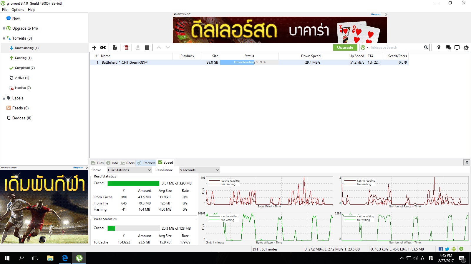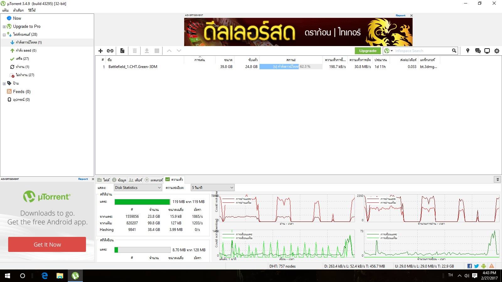 Utorrent ทำไมอัตราดาวโหลดมันต่างกันมากแบบสุดๆทั้งที่เน็ตเดียวกัน