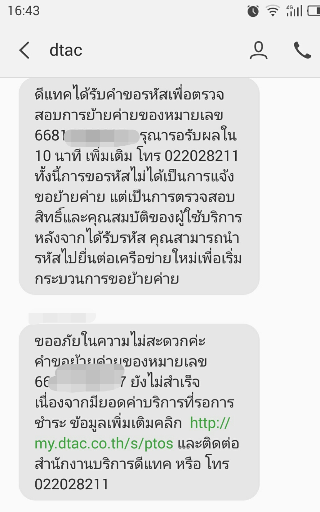 Dtac ครับ ทำไมกดขอรหัสย้ายค่ายไม่ได้ ???