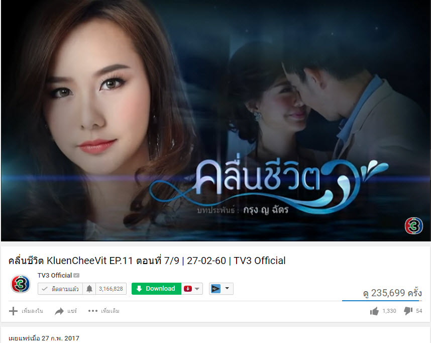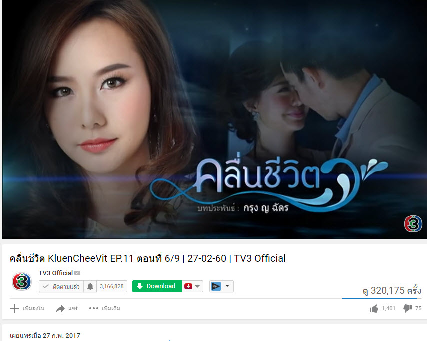 คลื่นชีวิต ผ่านไป 7 ซม. ยอดวิวใน youtube ตอนที่ 11. พุ่งทะยานรวม 2,792,320