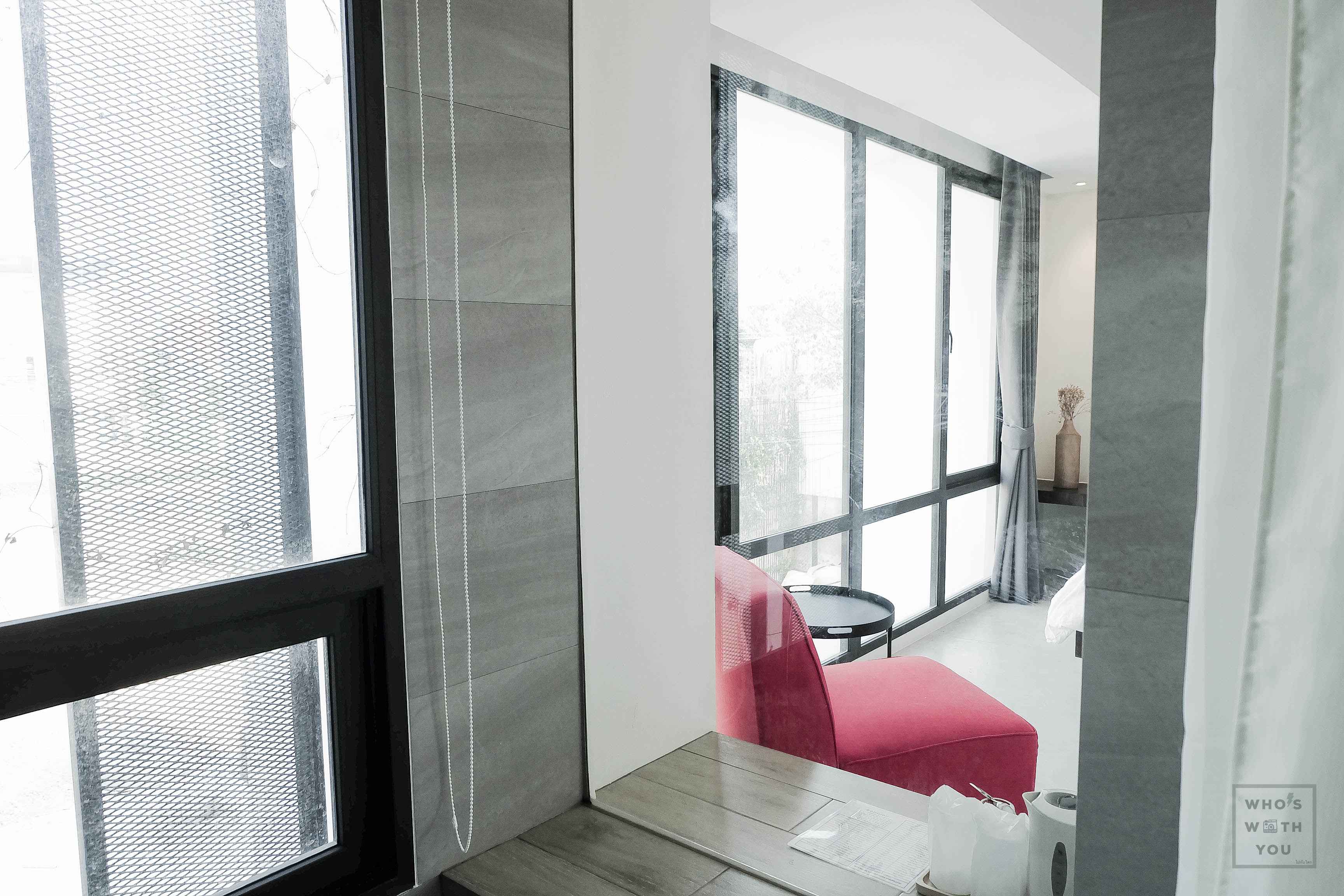แต่!!! ไม่มี ไม่ได้แปลว่าด้อยกว่า เพราะห้องนี้ นางมีกระจกกั้นห้องนอนกับห้องน้ำ นาจาาาา 5555