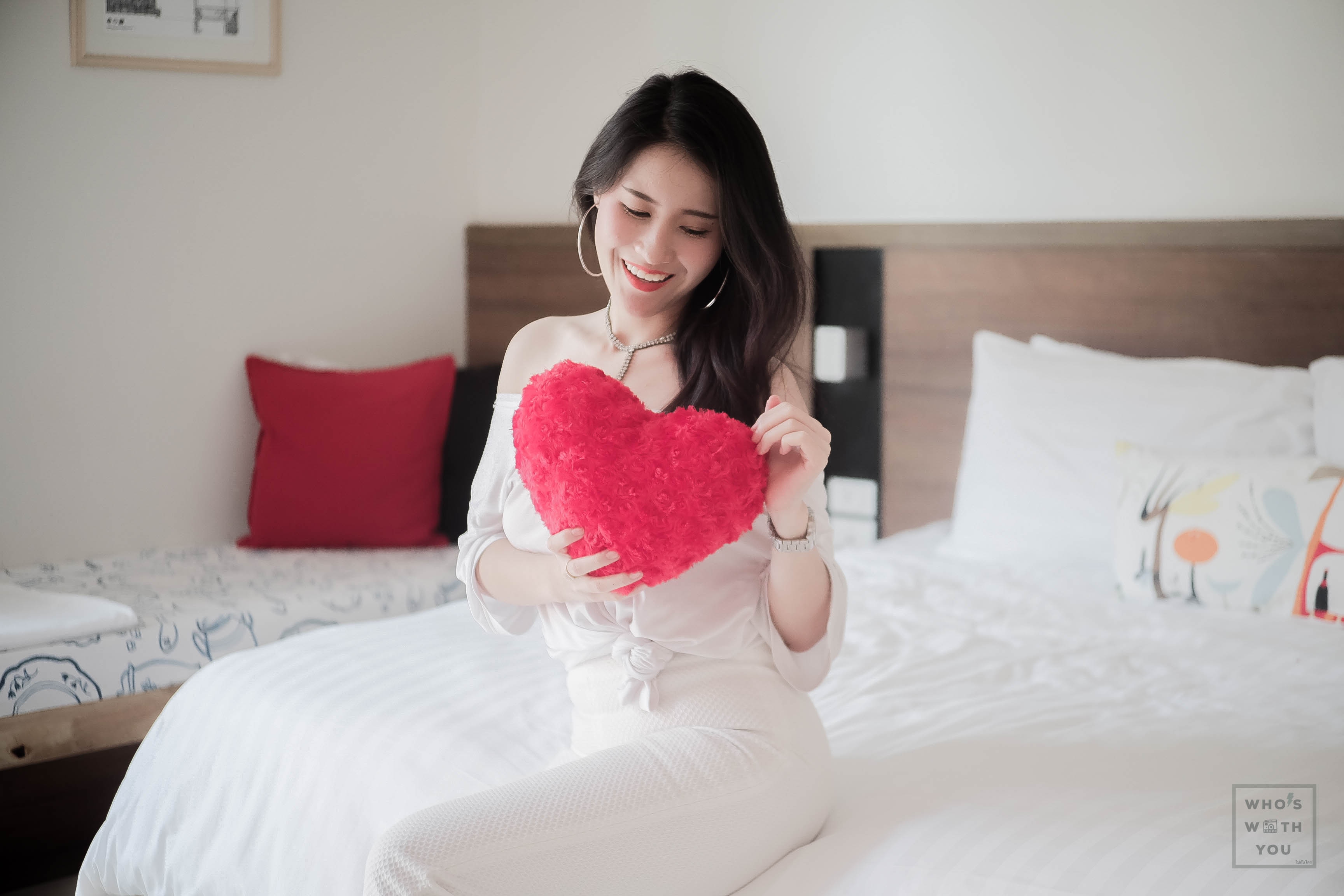 วันที่เราไป เราพักควบวันวาเลนไทน์ ทางโรงแรมก็แจกหมอนหัวใจนุ่มนิ่มให้ด้วย น่ารักมากเลยค่ะ