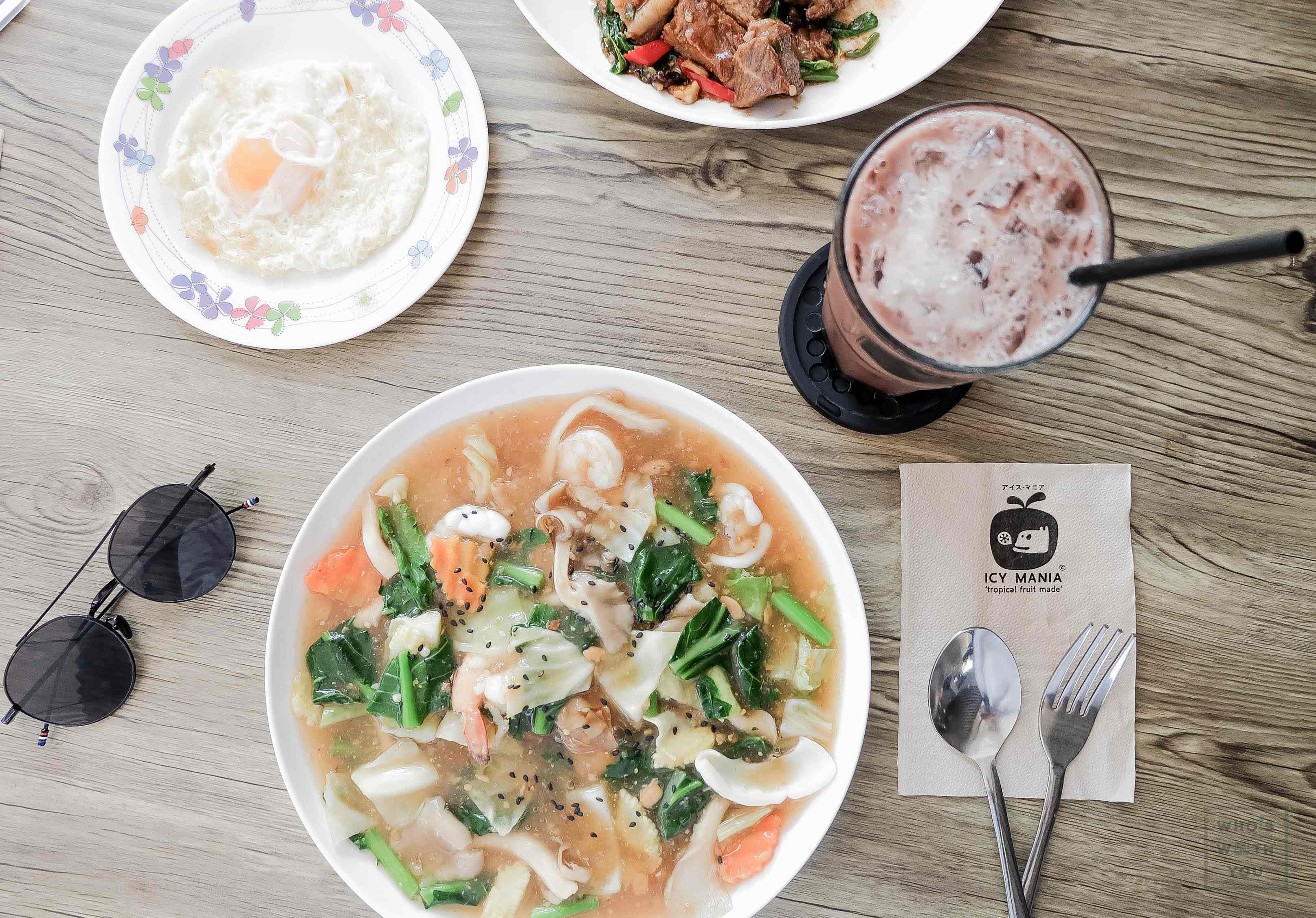 ร้านแรกที่เรามาทานก็คือร้าน "บ้านถั่วเย็น" มีขายทั้งกับข้าวแล้วก็ขนมหวาน
