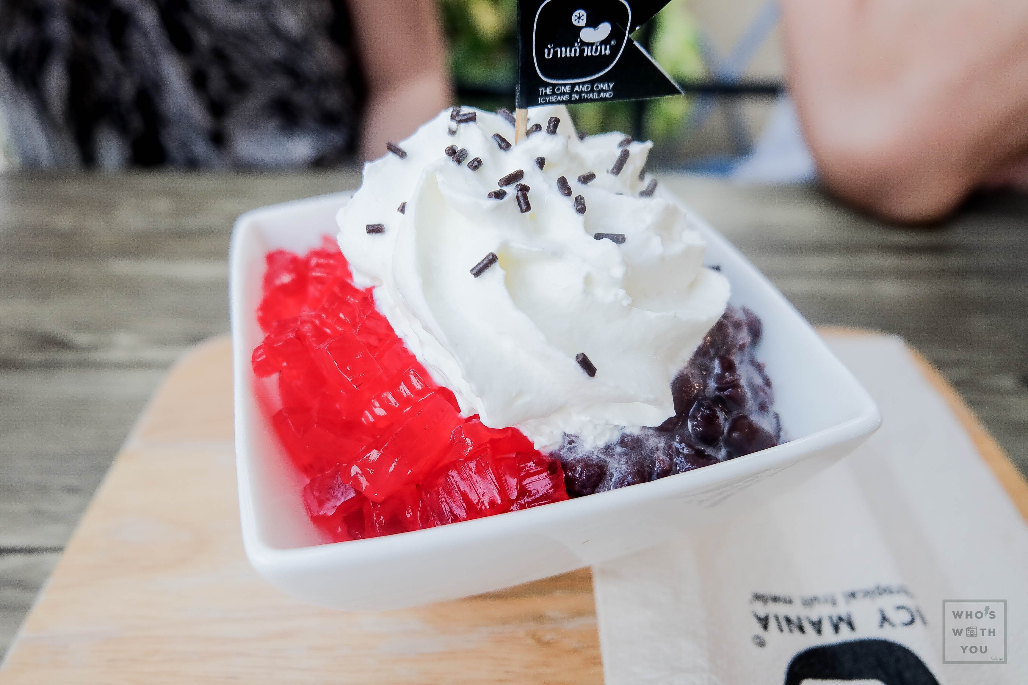 เมนูนี้มีชื่อว่า ไอซ์เยลลี่ถั่วแดง