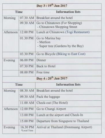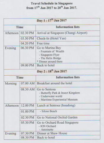 ผมวางแผนการไปยัง “Singapore” ไว้ตามนี้ครับ 4 วัน 3 คืน เที่ยวแบบครบสูตร (ที่จริงเตรียมไปเผือ ตม. ถาม)