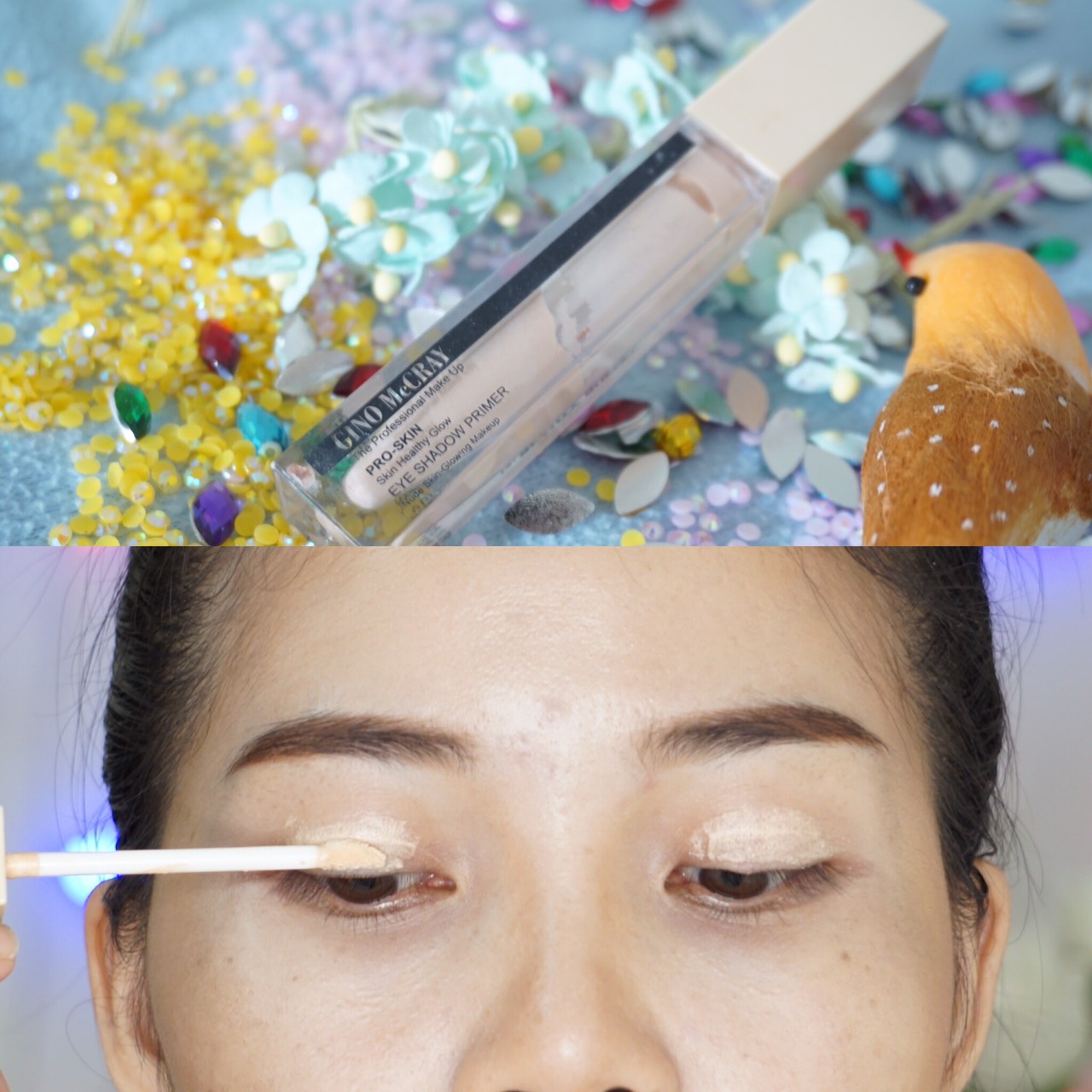 หลังจากนั้นทาอายไพรเมอร์ของ GINO McCRAYแล้วเกลี่ยให้ทั่วเปลือกตาค่ะ เพื่อให้อายแชโดว์ติดทนนั่นเอง