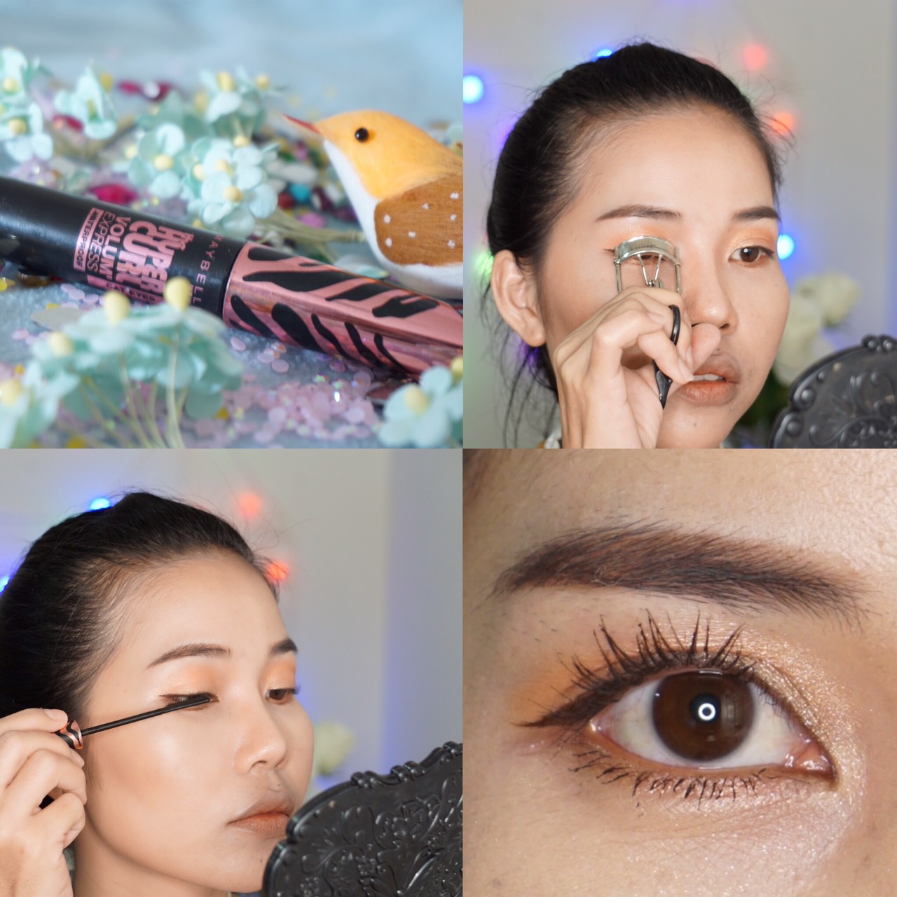 จากนั้นมาดัดขนตาและปัดมาสคาร่าของ เมย์เบอลีน รุ่นแคทอาย