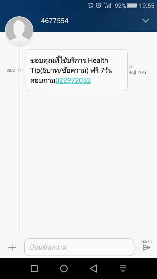 พูดเร็วมาก ว่าสมัครรับข้อมูล ฟรี 7 วัน หลังจากนั้นเสียครั้งละ 5 บาท ยังไม่ทันปฏิเสธ ก็วางหูไปทันที ทั้งๆ ที่ไม่ได้ตอบตกลงอะไร