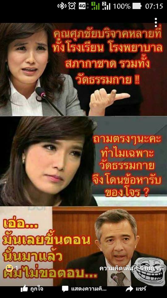 ทำไมช่วงนี้เห็นเงียบๆไปครับ พระท่านไปทำอะไรที่ไหนกันบ้างครับ พรรคเพื่อไทยไม่ร่วมทำบุญหรอครับ เห็นว่าได้เป็นรัฐบาลแล้ว ไม่มีคนอุ้มมันก็ไปลำบากนะครับ หลวงพ่อธัมมชโยท่านก็ไม่อยู่แ